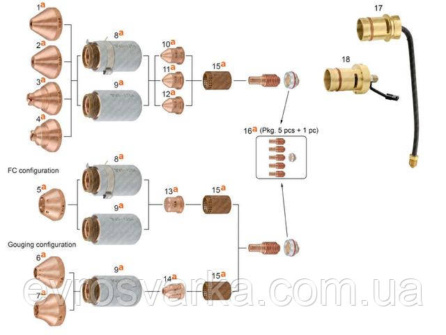 Електрод і дві частини завихрювача THERMACUT повинні использвоваться обов'язково разом. Тримач завихрювача (чорна частина) пропонується безкоштовно при купівлі упаковки електродів (5 електродів і 1 тримач завихрювача).
